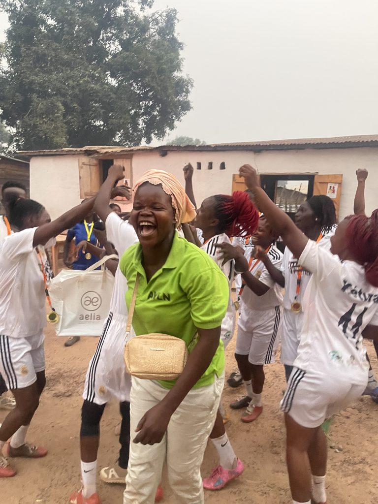 Survivors celebrating following the football match they organised as part of the end-of-project activities during GSF visit in Dekoa, CAR, February 2026. Nell Yacef/GSF