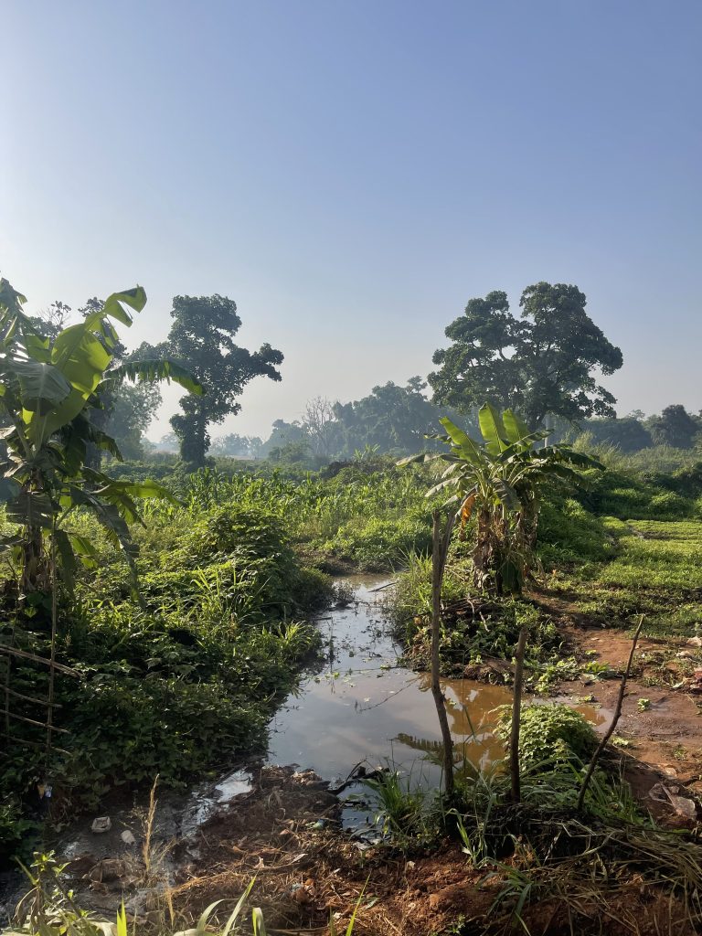 Survivors clear the banks of the Kombele river and its brige as part of the end-of-project activities during GSF visit in Dekoa, CAR, February 2026. Nell Yacef/GSF
