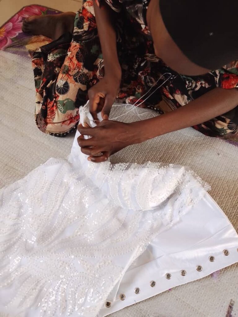 Survivor making her wedding dress with support of her vocational trainer. Nigeria, March 2025. Ussah – GSFUssah Yakubu/GSF